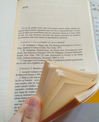 - Spre deosebire de alți autori, care „s-au născut înțelepți și atotștiutori”, Seligman este un autor responsabil, menționând sursele informațiilor prezentate sau autorii conceptelor și teoriilor menționate, iar, la final, listează toate referințele (61 de pagini de note!). Una dintre diferențele dintre știință și pseudoștiință este aceea că știința se bazează pe cercetările anterioare, pe care le documentează, le replică pentru a le testa validitatea. În plus, dacă vrei să afli mai multe despre un concept / fenomen psihologic sau despre interpretarea unui studiu, știi unde să cauți, stopându-se astfel răspândirea de informații incorecte, false sau parțial adevărate.